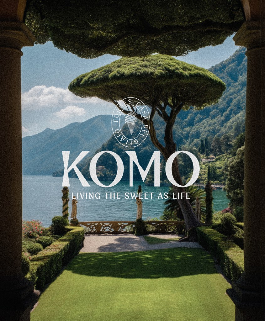 Komo is a personal project that articluates my love for making ice cream. The brand name draws inspiration from Lake Como while the tagline, ‘Living the sweet as life’, reimagines la dolce vita through a New Zealand lens.